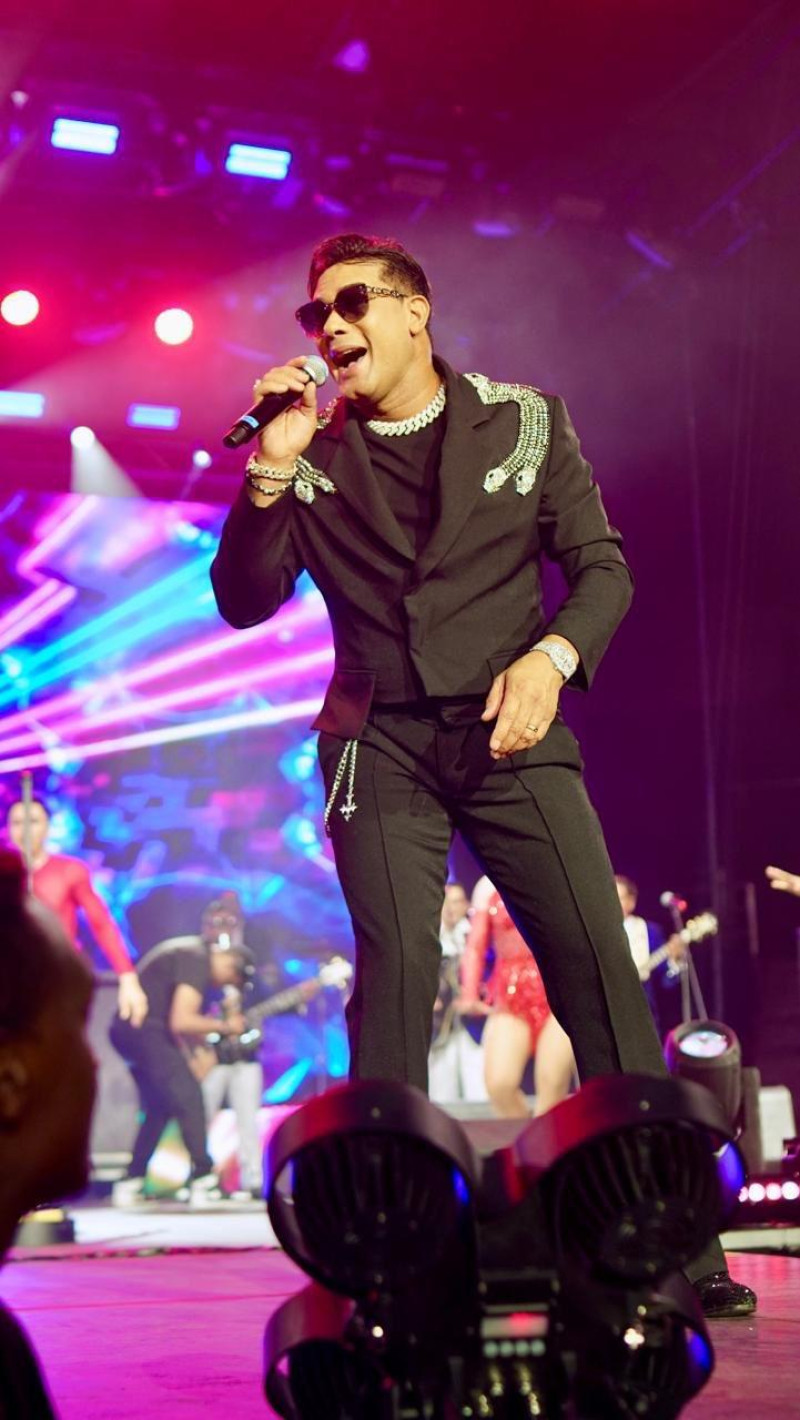 “De 6 de la tarde a 6 de la mañana, cantando canciones que yo escribí”, anunció el cantante mientras recibía reconocimiento por ser el segundo artista en llenar a capacidad la Gran Arena del Cibao dos noches seguidas.