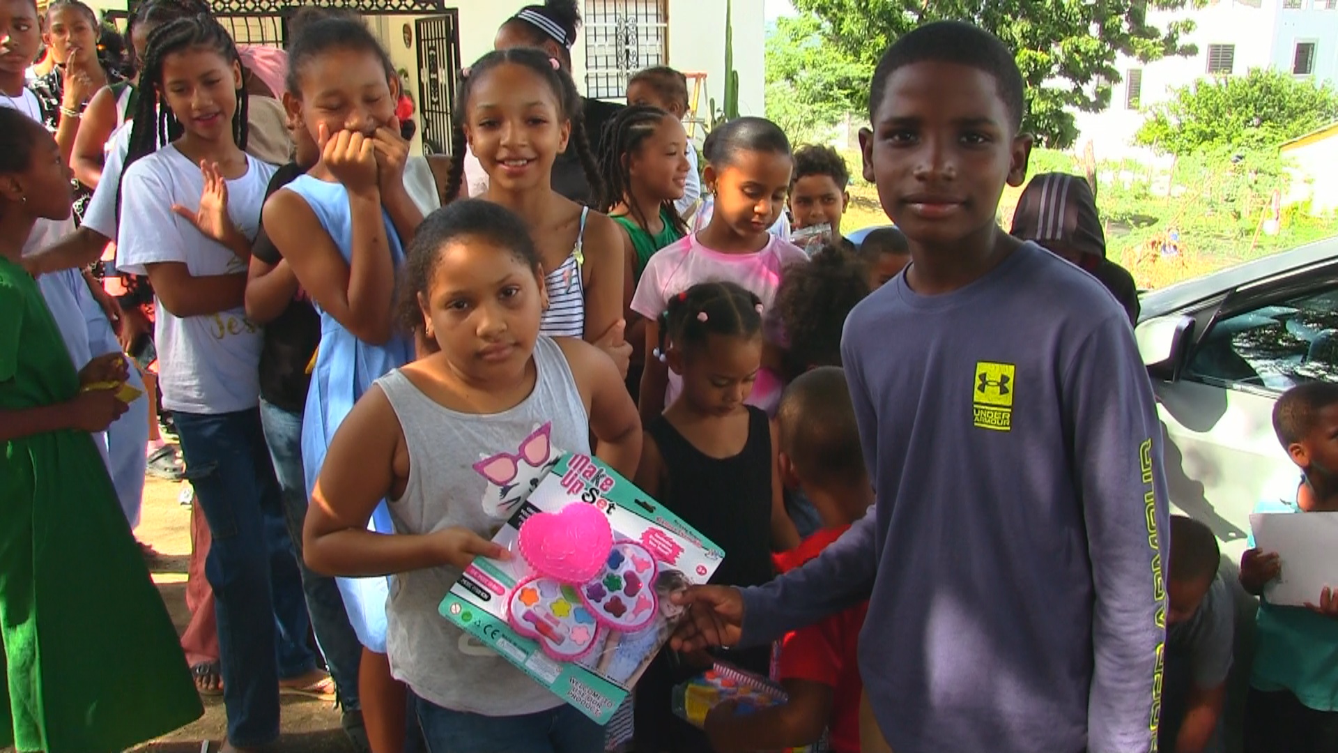 Azua.-Niños de escasos recursos de la empobrecida comunidad de La Mayita, en el municipio Las Yayas, provincia Azua, vivieron un día inolvidable gracias a la entrega de juguetes realizada por Max Lorenzo, un niño de apenas 11 años, hijo del comunicador Marcos Lorenzo, y su primo Kiguir Familia, también menor de edad.