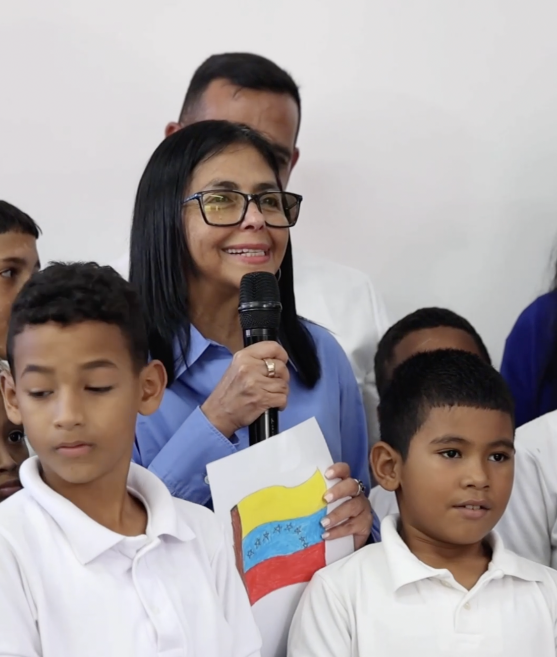 Durante su visita a uno de los centros escolares, la mandataria encargada ratificó «la soberanía y la independencia de Venezuela», por lo que recalcó que los recursos petroleros del país serán siempre destinados a «garantizar» el futuro de niños y niñas.