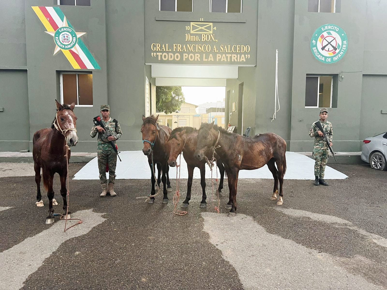 Los caballos recuperados fueron trasladados a las instalaciones del 10mo. Batallón de Infantería del ERD, donde permanecen bajo custodia para los fines correspondientes.