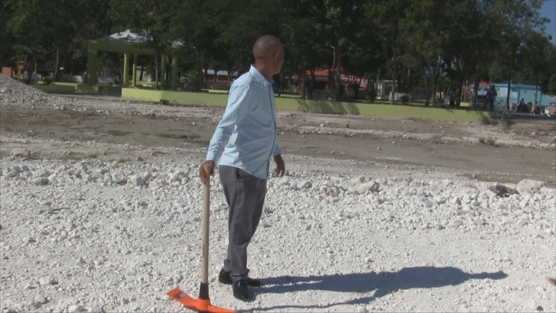 Azua.-El director de la Junta Municipal Doña Emma Balaguer, conocida como Finca 6, Ángel Salvador, encabezó el acto del primer picazo para la construcción de una cancha de baloncesto, una obra largamente esperada por la comunidad y que forma parte de los principales logros de su gestión municipal.