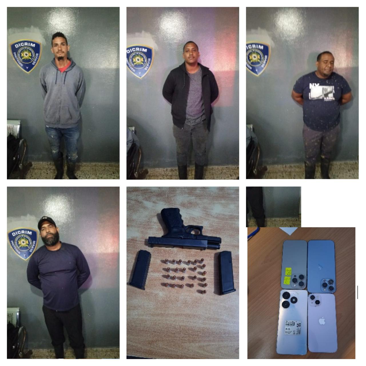Los arrestados son Miwlton Taveras Peguero, de 41 años; Julio Alberto Cabrera Cabrera Mercedes, de 45; Manuel Peralta Santo, de 25. También Francisco de Jesús Pérez, de 32, todos residentes en el municipio de Miches. Los detuvieron en el destacamento policial de Las Lagunas de Nisibón, tras una rápida intervención coordinada por las unidades actuantes.