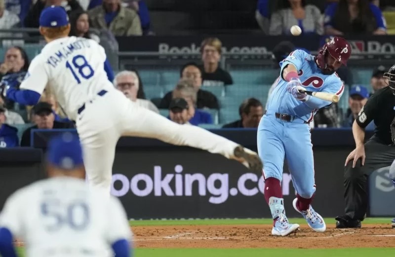 Yamamoto retiró a nueve de sus primeros diez bateadores antes de que los Filis lo vapulearan en la cuarta. Bryce Harper y Alec Bohm siguieron con sencillos y Harper anotó gracias a un error del jardinero central cubano Andy Pagés en un tiro. La pelota se escapó del tercera base Max Muncy y entró en la caseta de los Dodgers, moviendo a Bohm a tercera.