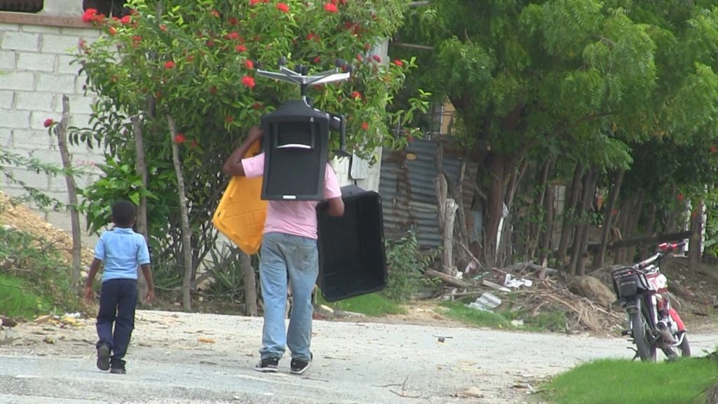 Algunos cargaban electrodomésticos hacia zonas más altas o seguras, mientras otros recurrían al ingenio: amarraban sogas en los techos para colgar camas, ropa y otros objetos de valor, intentando evitar que el agua se los lleve. “Aquí cuando llueve fuerte esto se vuelve un lago, y no precisamente el Enriquillo”, dijo entre ironía y preocupación una residente.